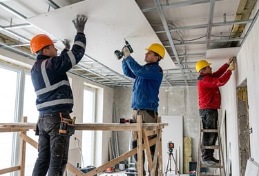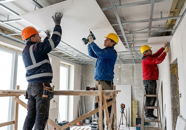 نقوم بتنفيذ جميع أنواع أعمال البلاط والأسقف المعلقة والجبس بواسطة فريق من ذوي الخبرة والكفاءة العالية